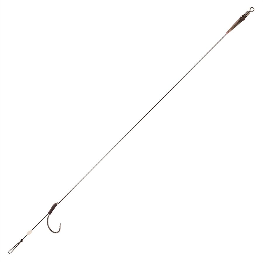 Das Rig ist einsetzbar auf festem und schlammigem Untergrund. Durch einen bereits vorhandenen Gummistopper auf dem Haar wird das Verrutschen von Partikeln oder Boilies verhindert.