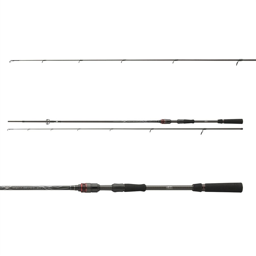 Ballistic Air – Spinnruten auf höchstem Niveau - Mit der Ballistic Air Serie bietet DAIWA eine exklusive Serie, die Maßstäbe in Sachen Leichtigkeit, Balance und Ausstattung setzt. Diese High-End-Spinnruten mit Fuji SiC Ringen überzeugen durch ihr modernes Design, technische Raffinesse und vielseitige Einsatzmöglichkeiten ideal für anspruchsvolle Angler, die bei der Ausstattung keine Kompromisse eingehen wollen. Die Blanks bestehen aus hochwertiger 40T-Kohlefaser und zeichnen sich durch ein besonders geringes Gewicht und eine extrem schnelle Aktion aus. Ausgestattet mit original Fuji Rollenhaltern, leichten und hochwertigen original Fuji SiC K-Ringen und einer perfekt ausbalancierten Konstruktion garantieren diese Ruten ein Höchstmaß an Sensibilität, Kontrolle und Wurfpräzision. Die spezielle Kohlefaseroberfläche, gravierte Aluminiumkomponenten, CNC-gefräste Rollenhalterschrauben sowie ergonomisch geformte EVA-Griffe sorgen für eine edle Optik und optimalen Komfort. Das Modell mit 2.30m Länge und einem Wurfgewicht von 518g wurde speziell für das Angeln mit verschiedenen Montagen wie Carolina-, Texas-, Dropshot- oder Free-Rigs entwickelt. Die feinfühlige Spitze erlaubt es dem Fisch, den Köder problemlos einzusaugen – ideal für die gezielte Barsch- und Zanderangelei. Für alle Softbait-Enthusiasten stehen Modelle mit Wurfgewichten von 7–28g, 10–35g, 14–42g bis hin zu 18–56g zur Verfügung. Die dünnen, extrem schnellen und sehr straffen Blanks dieser Ruten übertragen jede Bewegung des Köders, Bodenkontakt und vorsichtige Anfasser unmittelbar und direkt bis in die Hand. Ein Highlight der Serie ist das Modell mit 3.05?m Länge und 732?g Wurfgewicht. Diese Rute wurde für weite Würfe und die gezielte Meerforellenfischerei konzipiert. Sie befördert Küstenblinker und Wobbler auf große Distanz und überträgt vorsichtige Bisse auch auf weite Entfernungen. Diese Rute ist mit einem Fuji VSS-Rollenhalter und durchgehendem EVA-Griff ausgestattet. Die Ballistic Air Serie steht für absolute Präzision, hochwertige Verarbeitung und kompromisslose Leistung für alle, die beim Spinnfischen das Beste erwarten.  - HMC+ Kohlefaserblank - Blank mit Zierwicklung - Zuverlässige Zapfenverbindung (Put-Over) - Geteilter EVA Griff - Fuji Skeleton Rollenhalter - Fuji SiC K-Ringe