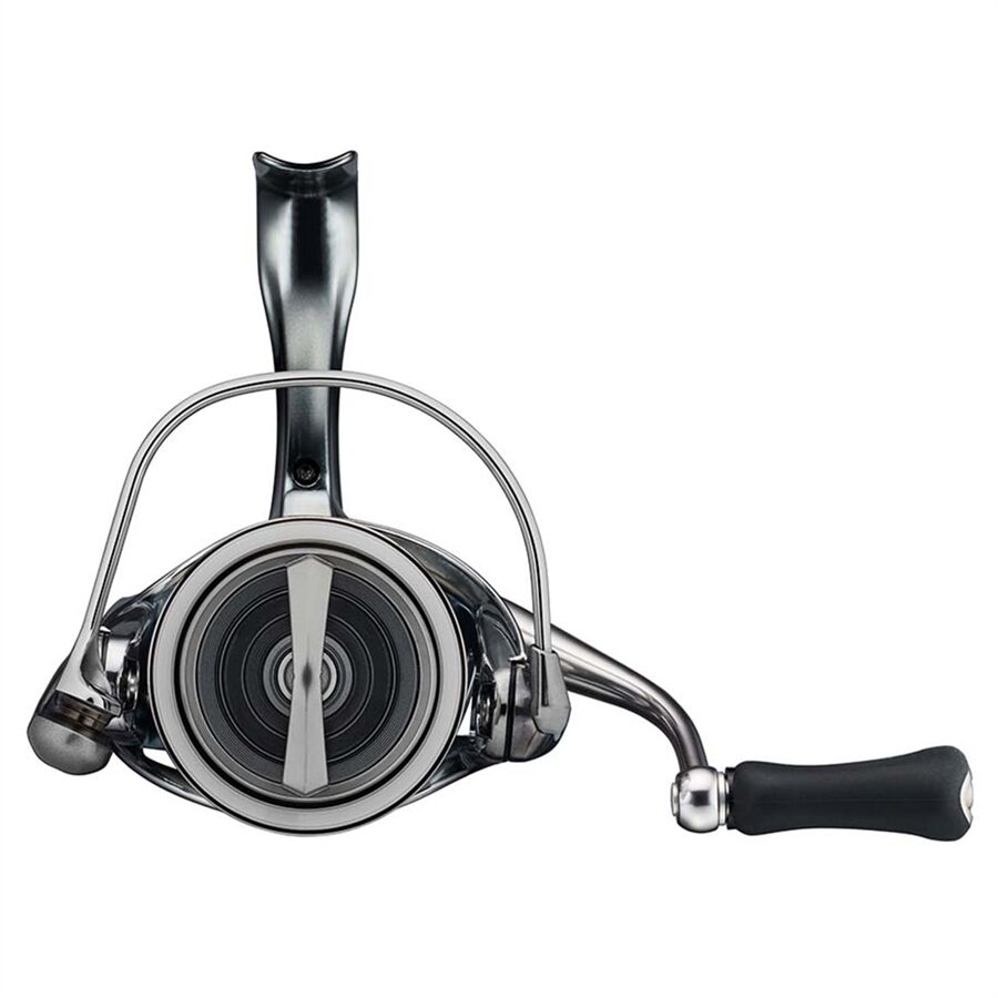 Optimale Kontrolle in allen Situationen: AIRDRIVE - Rotation und Sensibilität wie man es nie zuvor erlebt hat. Das neue AIRDRIVE DESIGN ist der Wegbereiter für die zukünftige Rollenentwicklung bei DAIWA. Durch Gewichtsreduktion des Rotors, der Spule und des Bügelarms wird eine leichtere Rotation erreicht. Diese leichte Rotation nahezu ohne Anfangswiderstand verschafft dem Angler ein unglaubliches Angelerlebnis. Diese neue Ära startet mit der 22EXIST. Am Anfang der Entwicklung des AIRDRIVE DESIGN´S hat DAIWA zunächst die Konstruktion einer Spinnrolle in zwei Schlüssel-Segmente unterteilt - das erste besteht aus dem „hinteren“ Rollenteil, der aus dem Gehäuse und den inneren Komponenten, wie z.B. dem Getriebe, besteht. Durch den Einsatz der MQ Technologie in Verbindung mit dem TOUGH DIGIGEAR Getriebe - das nun nahezu zum Standard bei allen DAIWA Spinnrollen geworden ist - hat diese hintere Einheit enorme Stärke und Lebensdauer erhalten. Im zweiten Schritt hat DAIWA begonnen, die Schlüsselkomponenten der sog. Front-Einheit zu überarbeiten und optimieren. Durch Neuentwicklung des Rotors, der Spule und des Bügelarms kann DAIWA des Gewichts dieser Einheit weiter reduzieren. Nach langer Entwicklungszeit ist das neue AIRDRIVE DESIGN das Ergebnis dieser neuen Konzeption - DAIWA hat hier erneut an echtes Meisterstück an Innovation abgeliefert, dass Anglern die totale Kontrolle ermöglicht. Reduziertes Gewicht, seidenweicher Lauf und extreme Sensibilität ermöglichen eine optimale Laufruhe und Belastbarkeit. All diese Merkmale in Kombination bilden das neuartige AIRDRIVE DESIGN. AIRDRIVE DESIGN kann in 4 Schlüssel-Technologien unterteilt werden. Der neue AIRDRIVE Rotor und der neu entwickelte AIRDRIVE Bügel reduzieren das Gewicht im oberen Teil der Rolle. Reduziertes Gewicht sorgt für sanfte und leichte Rotation mit schnellerem Anlauf und weniger Anlaufwiderstand. Nicht notwendiges Gewicht und Wandstärken wurden reduziert, um die neue, innovative AIRDRIVE Spule zu konstruieren, die sich perfekt mit dem neuen Rotor und der dem neuen Bügel verbindet, und die neu designte Front-Einheit komplettiert. Anders als das Innenleben bei herkömmlichen Spinnrollen, hat DAIWA eine Low-Contact Struktur zwischen Achse und Pinion-Getriebe entwickelt - den AIRDRIVE SHAFT. Durch Implementierung dieser Technologie wird Reibungswiderstand reduziert und der geräuschlose, weiche Lauf optimiert. Durch Kombination dieser Elemente ist es DAIWA möglich, extrem leichte Rollen zu konstruieren und es dem Angler zu ermöglichen, den extrem leichten Anlaufwiderstand zu erleben und dabei bessere Kontrolle über Rute und Köderführung zu erhalten. Das reduzierte Gewicht im Vorderteil der Rolle bietet eine optimale Balance, sobald die Rolle and der Rute montiert ist. Dies führt zu besserer Wurfl¬eistung und besserer Kontrolle. - AIRDRIVE DESIGN - AIRDRIVE ROTOR - AIRDRIVE BAIL - AIRDRIVE SPOOL - AIRDRIVE SHAFT - TWISTBUSTER 3 - MQ Body (Mg) - Tough Digigear - MAGSEALED. Body, Line roller, Drive Gear - ATD Type-L - 12BB (2MS, 10CRBB) - Made in Japan